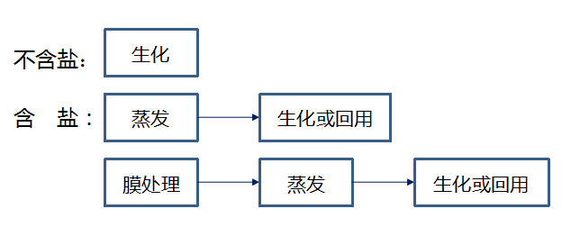 大多數(shù)工業(yè)廢水成分相對簡單,只含有少量有機污染物,處理工藝也相對簡單,一般只需要簡單的預(yù)處理(過濾、沉淀、調(diào)pH等)加上生化處理即可。有些廢水中除了含少量有機污染物外,還含有少量鹽分,則需要進行除鹽,一般采用蒸發(fā)、膜處理工藝,出水可生化處理后達標(biāo)排放或者進行回用。